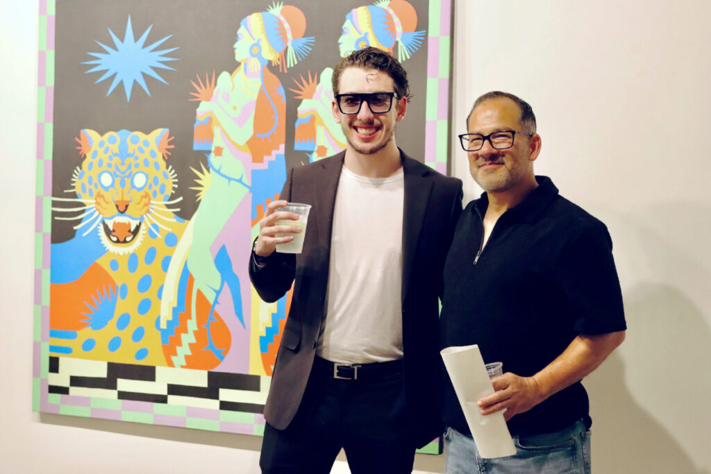 Border Heritage visitó la exposición y quedamos cautivados por el poderoso lenguaje visual de Urias, caracterizado por composiciones vibrantes y un diseño de estilo surrealista que explora la identidad, la memoria y la herencia cultural. En Árida, el artista reflexiona sobre la resiliencia y la transformación cultural, tendiendo puentes entre las tradiciones mexicanas y una perspectiva global contemporánea.