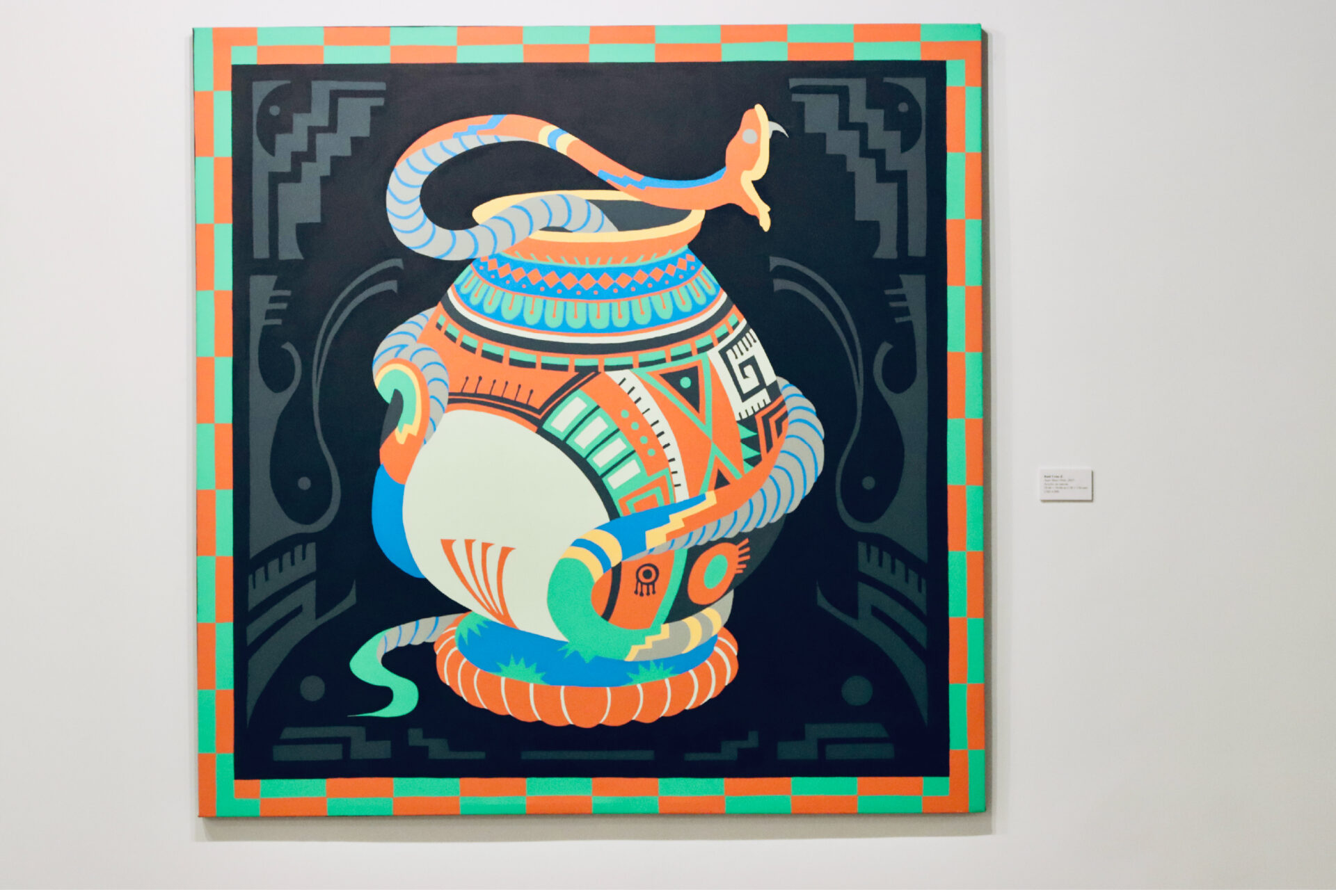 Border Heritage visited the exhibition and we were captivated by Urias’ powerful visual language—marked by vibrant compositions and surrealist design—that explores identity, memory, and heritage. In Árida, the artist reflects on resilience and cultural transformation, bridging Mexican traditions with a contemporary global perspective.